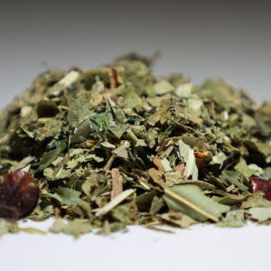 - des feuilles de cassis, de frêne, de bouleau et d’ortie de même que des racines de pissenlit et du cynorrhodon contribuant à l’élimination des toxines et favorisant la mobilité des articulations.